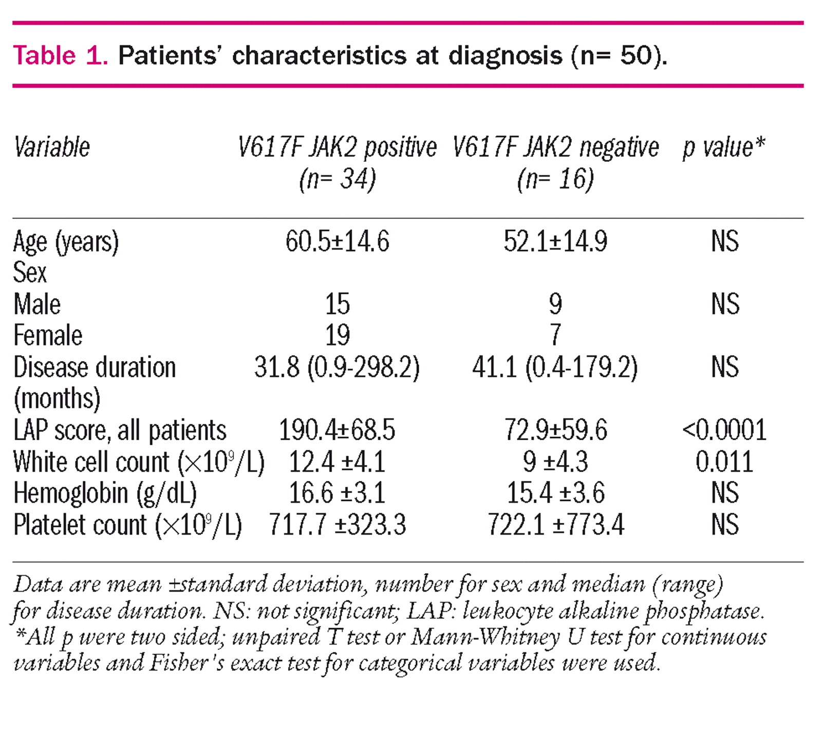 Accuracy of leukocyte alkaline phosphatase score to predict JAK2 V617F mutation | Haematologica